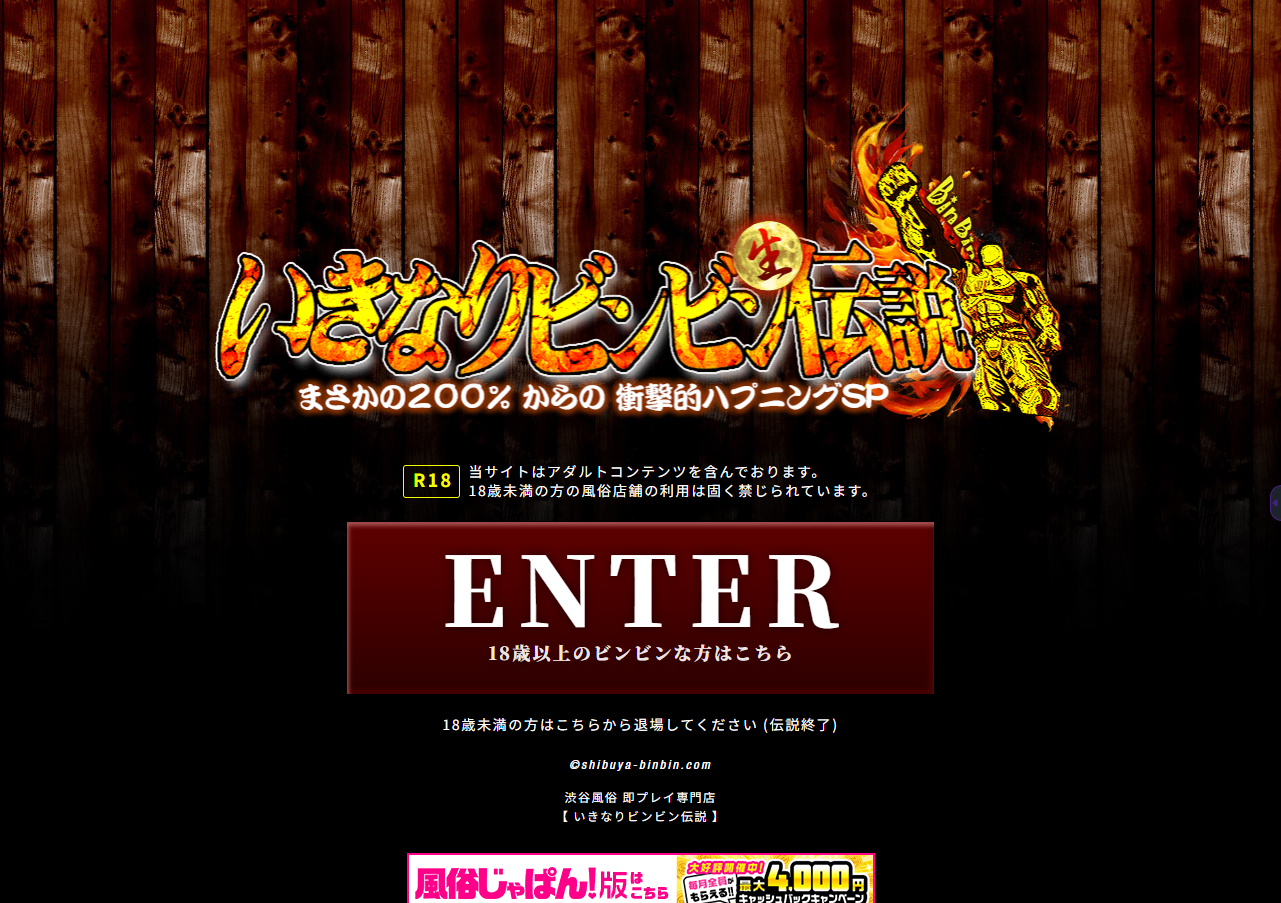 渋谷・道玄坂にあるホテヘル「いきなりビンビン伝説」は、アイマスクで視界を遮り出会ってすぐに濃厚なプレイが始まるのが特色です。短時間プランや各種コース、動画や写メ日記で在籍女性の雰囲気が確認でき、受付ではホテル手配やコース選択のサポートがあります。アクセスは渋谷駅から徒歩約5分です。