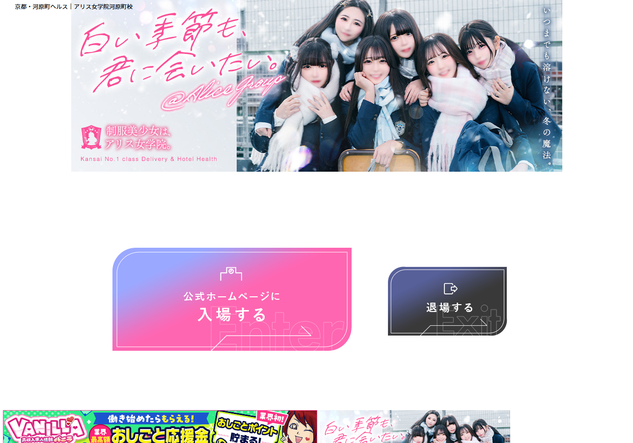 京都・河原町にある学園系ヘルス「アリス女学院 河原町校」は、制服・スク水・体操服など多彩なコスプレを常時無料で提供し、清楚系の若いキャストによる密着度の高い正統派プレイが楽しめます。阪急京都河原町駅から徒歩1〜2分の好立地で、45分15,000円〜の料金設定や写メ日記・動画など豊富な在籍コンテンツが魅力です。
